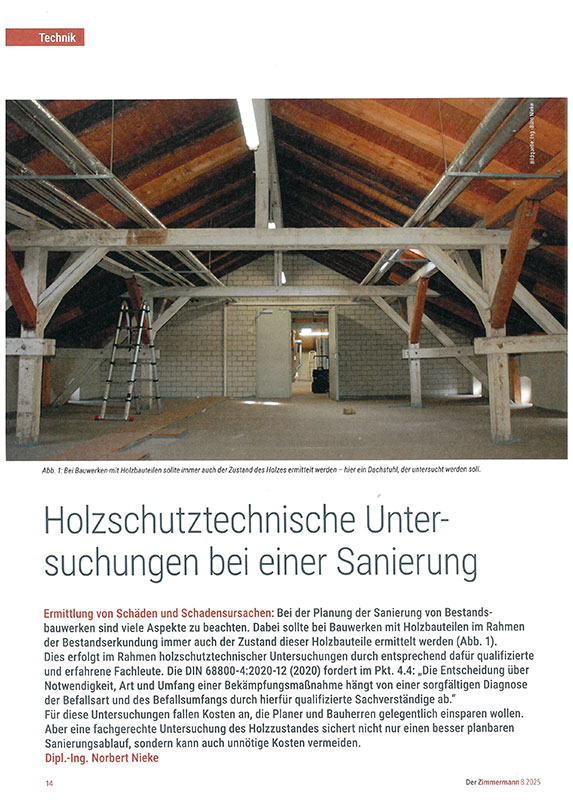 Fachbeitrag „Holzschutztechnische Untersuchungen bei einer Sanierung“